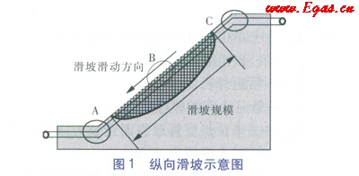 該工況下管道沿山坡方向敷設(shè),管道走向與滑坡體滑動方向一致(見圖l),滑坡體滑動時(shí)管道受下滑坡體軸向摩擦作用力明顯,另外滑坡體到達(dá)底部時(shí)受空間限制會發(fā)生向上隆起的現(xiàn)象,而在滑坡區(qū)域之外,即A、C點(diǎn)以外區(qū)域,可以近似認(rèn)為管道兩端受到位移的約束。