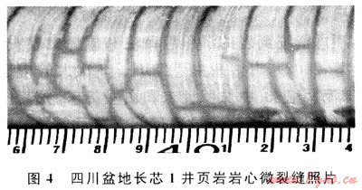 頁巖作為一種特殊的儲集巖,一般呈現低孔、特低滲的物性特征,只有處于斷裂帶或裂縫發(fā)育帶的頁巖儲層的孔隙度、滲透率有部分增加。富有機質頁巖天然氣裂縫類型多樣,主要與生烴過程、地層孔隙壓力、各向異性的水平壓力、斷層作用、褶皺作用等密切相關,裂縫發(fā)育程度對頁巖氣藏有效開發(fā)至關重要。頁巖產生裂縫的能力,主要取決于頁巖類型和礦物學特征。當頁巖含有較少的膨脹性黏土礦物,較多的硅質等礦物時(一般30%~80%,如Fort Worth盆地Barnett頁巖為40%~60%),巖石脆性增強,產生裂縫的能力提高,裂縫網絡比較容易產生。據統計,美國頁巖礦物含量組成中,硅質含量平均40%~50%,甚至最高可達80%,正是由于這些高比例的有機硅,導致頁巖表現為易于破碎和產生裂縫,并易于壓裂改造的儲層特征。