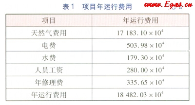 天然氣是一種清潔、優(yōu)質(zhì)、使用方便的能源。與燃煤鍋爐房相比,燃?xì)忮仩t房可省去脫硫、除塵、上煤、除渣等設(shè)備,無(wú)需煤、渣堆場(chǎng),節(jié)省用地,運(yùn)行管理較簡(jiǎn)單。該項(xiàng)目供熱面積為612×104m2,鍋爐熱效率取0.95,天然氣的低熱值為35.16MJm3,天然氣額定耗量為36400m3h。天然氣價(jià)格按1.65元/m3計(jì)算,電價(jià)按0.59元/(kW·h)計(jì)算,水價(jià)按5.5元/t計(jì)算,人員工資按4×104(·a)計(jì)算,年維修費(fèi)按設(shè)備造價(jià)的1.8%計(jì)算。項(xiàng)目年運(yùn)行費(fèi)用見(jiàn)表1。由表1可知,項(xiàng)目的年運(yùn)行費(fèi)用為18482.03×104元/a。項(xiàng)目造價(jià)為25140.38×104元,使用壽命為20a,年收益率為5%。采用費(fèi)用年值法對(duì)項(xiàng)目進(jìn)行經(jīng)濟(jì)性分析,費(fèi)用年值F的計(jì)算式為: