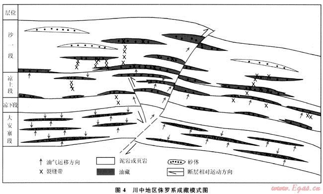 川南的向斜區(qū)含油明顯,官渡構(gòu)造在侏羅系單井最高日產(chǎn)原油達(dá)30t,充分說(shuō)明這一區(qū)域的勘探潛力。