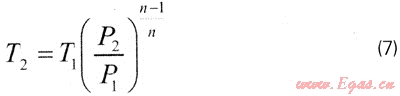 由式(6)求出絕熱非等熵過程的指數(shù)n后,便可由下式算出膨脹降壓后天然氣的溫度[12]: