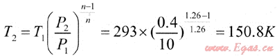 從工程熱力學(xué)可知,對于理想氣體在絕熱等熵膨脹時,它的膨脹過程可以用下述簡單的指數(shù)方程來表示[12]: