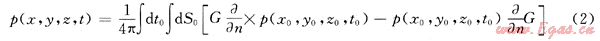 根據(jù)邊界條件,由式(2)推導(dǎo)出克希霍夫積分式: