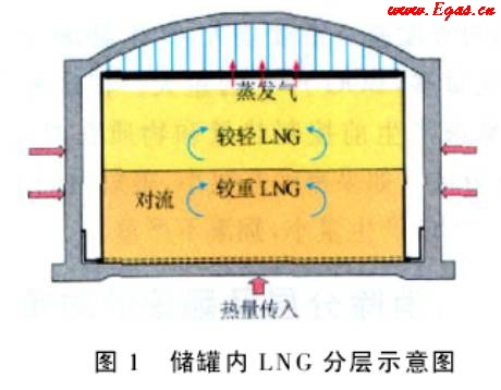 LNG是多組分混合物,因溫度和組分的變化,液體密度的差異使儲罐內(nèi)的LNG可能發(fā)生分層。一般罐內(nèi)液體垂直方向上溫差大于0.2、密度大于0.5kg/m3時,即認為罐內(nèi)液體發(fā)生了分層。