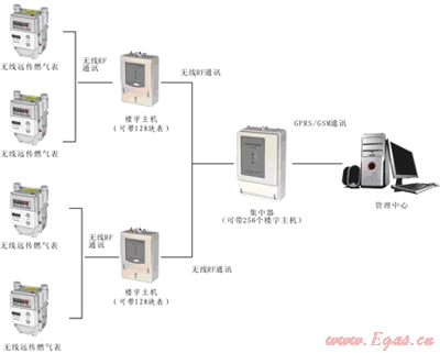 IC卡無線遠傳燃氣表的數(shù)據(jù)可由無線方式自動上傳給樓宇主機,樓宇主機通過無線方式把數(shù)據(jù)傳給集中器,集中器通過GPRS/GSM網(wǎng)絡把數(shù)據(jù)傳給燃氣公司的IC卡無線遠程抄表系統(tǒng)中,由此實現(xiàn)在管理中心自動抄錄所有的燃氣表數(shù)據(jù)。