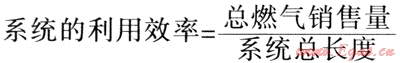 大量的國(guó)內(nèi)外資料表明,城市管網(wǎng)管線長(zhǎng)度與銷售量有明顯的線性關(guān)系,國(guó)際上常以總銷量(106m3)與系統(tǒng)總長(zhǎng)度(km)的比值表示——燃?xì)廨斉湎到y(tǒng)的利用效率[1]: