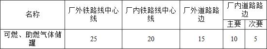 表4.3.6 可燃、助燃?xì)怏w儲罐與鐵路、道路的防火間距(m)