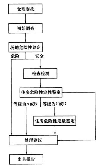 鑒定應(yīng)根據(jù)地基危險性狀態(tài)和基礎(chǔ)及上部結(jié)構(gòu)的危險性等級按下列兩階段進行綜合評定: