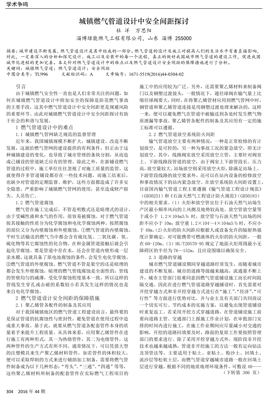 城鎮(zhèn)燃?xì)夤艿涝O(shè)計中安全間距探討
