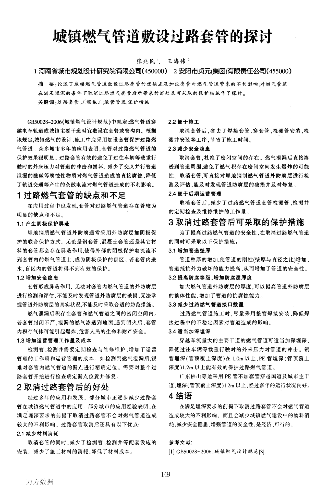 城鎮(zhèn)燃?xì)夤艿婪笤O(shè)過路套管的探討