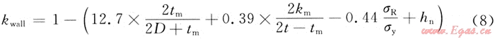 式中:dwall=D-2kwallt。