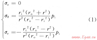 套管在井下情況的受力較為復雜,為了分析方便,主要考慮套管受內壓和外擠作用(即管內外壓差),而忽略軸向力和溫度對管柱應力的影響時,套管屬于中厚壁管(圖1)。