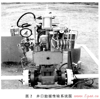 遠(yuǎn)程測試技術(shù)的核心主要在于兩個(gè)方面:①依靠井口數(shù)據(jù)遠(yuǎn)傳技術(shù),在井口安裝壓力變送器對套壓進(jìn)行數(shù)據(jù)采集與傳輸;②建立適合蘇里格氣田實(shí)際的壓力折算模型和計(jì)算系統(tǒng),進(jìn)行試井解釋和分析。圖2是已經(jīng)投入使用的井口數(shù)據(jù)傳輸系統(tǒng)。