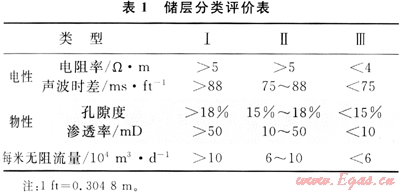 利用三維地震、巖心、區(qū)域?qū)有騽澐值荣Y料,結(jié)合地質(zhì)、鉆井、測井資料,確定了氣藏基本骨架;采用Strata井約束反演技術(shù),落實(shí)了儲層砂體的空間展布規(guī)律;對儲層進(jìn)行了分類評價(表1),為布井、鉆井和氣井合理配產(chǎn)奠定了基礎(chǔ)[3]。