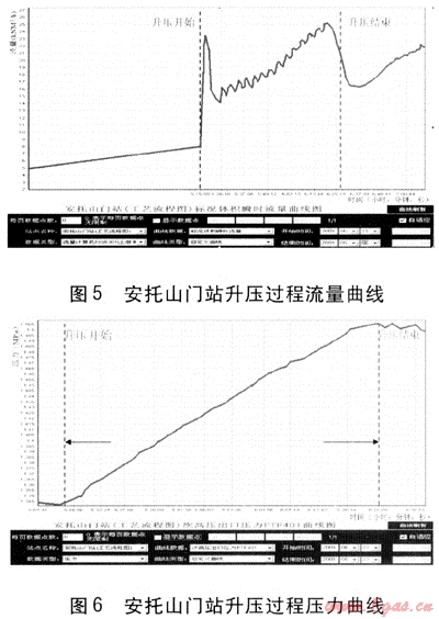 從圖5可見,流量的變化較為平穩(wěn),隨壓力升高逐步增加。從圖6可見,升壓過程從5:15到6:28,壓力上升速率為0.139MPa/h,壓力變化較為平穩(wěn)。