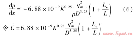 該管段上長度為以的微元壓力損失可用壓力增量dp表示: