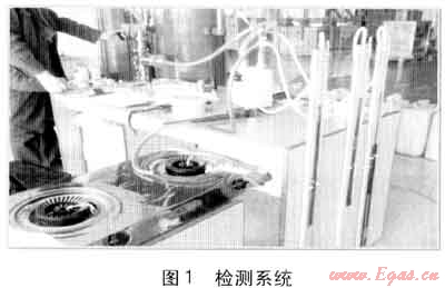 檢測(cè)工具及設(shè)備有:秒表、膠管、鐘罩1臺(tái)、U形管3只、雙眼灶具2臺(tái)、單眼灶具1臺(tái)。檢測(cè)系統(tǒng)見(jiàn)圖1。