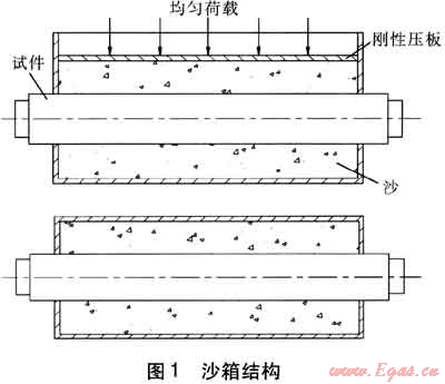 CJ/T 200—2004、TSG D7002—2006對沙箱外形尺寸(尤其是寬度)的要求有所不同。CJ/T 200—2004要求的沙箱寬度按試件外護鋼管的外徑(最大試驗能力)加300mm為限,而TSG D7002—2006是以試件工作管外徑(最大試驗能力)加200 mm為限,沙箱長度由1800mm改為1500mm。兩個規(guī)范對沙箱高度沒有進行要求,在實際設計制造過程中,沙箱高度是在寬度基礎上附加容納剛性壓板厚度得到的。