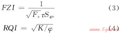 定義流動單元指標(biāo)FZI和儲層質(zhì)量系數(shù)RQI為: