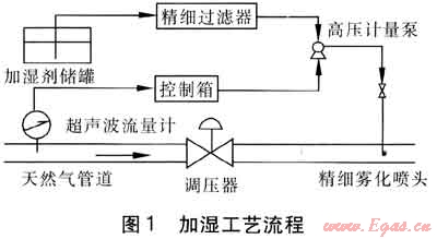 結合青島市燃氣管網(wǎng)的實際運行情況,自行設計了噴霧加濕工藝流程,見圖1。