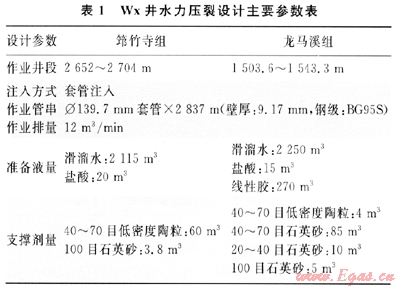 2.1 Wx井壓裂設(shè)計參數(shù)