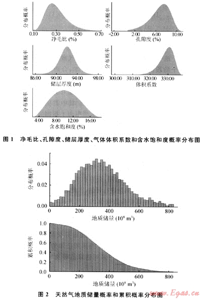 運(yùn)用概率法計(jì)算地質(zhì)儲(chǔ)量時(shí),采用概率分布函數(shù)量化參數(shù)的不確定性,運(yùn)用蒙特卡羅模擬抽取模型內(nèi)的每個(gè)輸入的概率分布,得到多次迭代的迭代值,從而模型輸出值的分布反映了某個(gè)儲(chǔ)量值的概率,從而對(duì)地質(zhì)儲(chǔ)量的不確定性進(jìn)行評(píng)估Ⅲ。