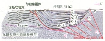 圖2阿瓦特段、博孜段構造解釋模式圖