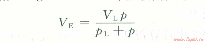 式中K為在壓力P下單位體積儲(chǔ)層里吸附氣的體積,m3/t;V。.為L(zhǎng)angmuir體積,表示吸附劑的最大吸附體積,M3/t;P為氣體壓力,MPa;pl,為L(zhǎng)angmuir壓力,MPa,此時(shí)吸附氣體積(VE)為L(zhǎng)angmuir體積的1/2。