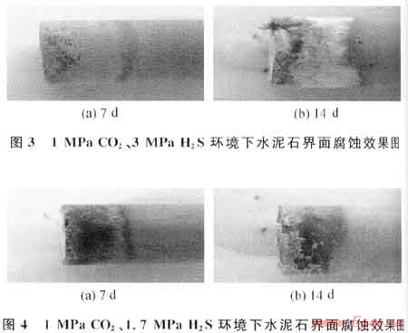 通過界面腐蝕的試驗(yàn)方法,對(duì)井下水泥環(huán)受H2S、C02等酸性氣體腐蝕的機(jī)理進(jìn)行了分析,得到如下結(jié)論和建議: