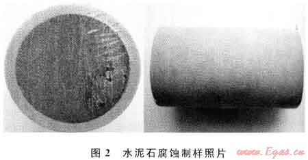 通過對(duì)目前國內(nèi)外開展的水泥石抗酸性介質(zhì)腐蝕能力的文獻(xiàn)資料調(diào)研,發(fā)現(xiàn)以往的腐蝕實(shí)驗(yàn)均是采用將水泥石樣完全浸泡在酸性環(huán)境下進(jìn)行試驗(yàn)的實(shí)驗(yàn)手段[1~3],但實(shí)際上,井下水泥環(huán)受到腐蝕是從氣層和水泥環(huán)的接觸界面開始的,而并非水泥環(huán)整體同時(shí)受到腐蝕,因此以往水泥石受酸性氣體腐蝕的實(shí)驗(yàn)結(jié)果與實(shí)際情況并不完全吻合。