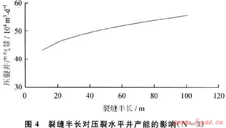 4) 裂縫不是越長越好,壓裂井產(chǎn)能增長幅度隨縫長增加而下降。