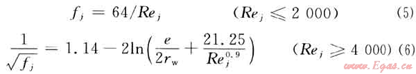 fj為第j段水平井筒壁面摩擦系數(shù),可由下式計算得到:
