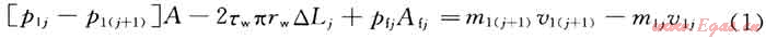 以井筒上第j條裂縫和第j+1條裂縫之間的滲流進行研究(圖1),第j條裂縫左端的進入壓力為p1j,出口端的壓力為p2j,,進入口速度和出口速度為v1j和v2j??紤]井筒內(nèi)壓降,由動量定理可得: