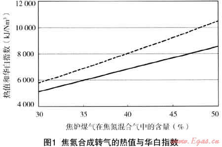 在實(shí)際應(yīng)用中,當(dāng)利用氮?dú)馓娲郀t煤氣與焦?fàn)t煤氣合成轉(zhuǎn)爐煤氣時(shí),由于其能夠互換的范圍較小,難于實(shí)現(xiàn)各參數(shù)的精確控制,為保證安全及穩(wěn)定運(yùn)行,可適當(dāng)提高焦?fàn)t煤氣在混合氣中的比例,以保證不致形成脫火現(xiàn)象。