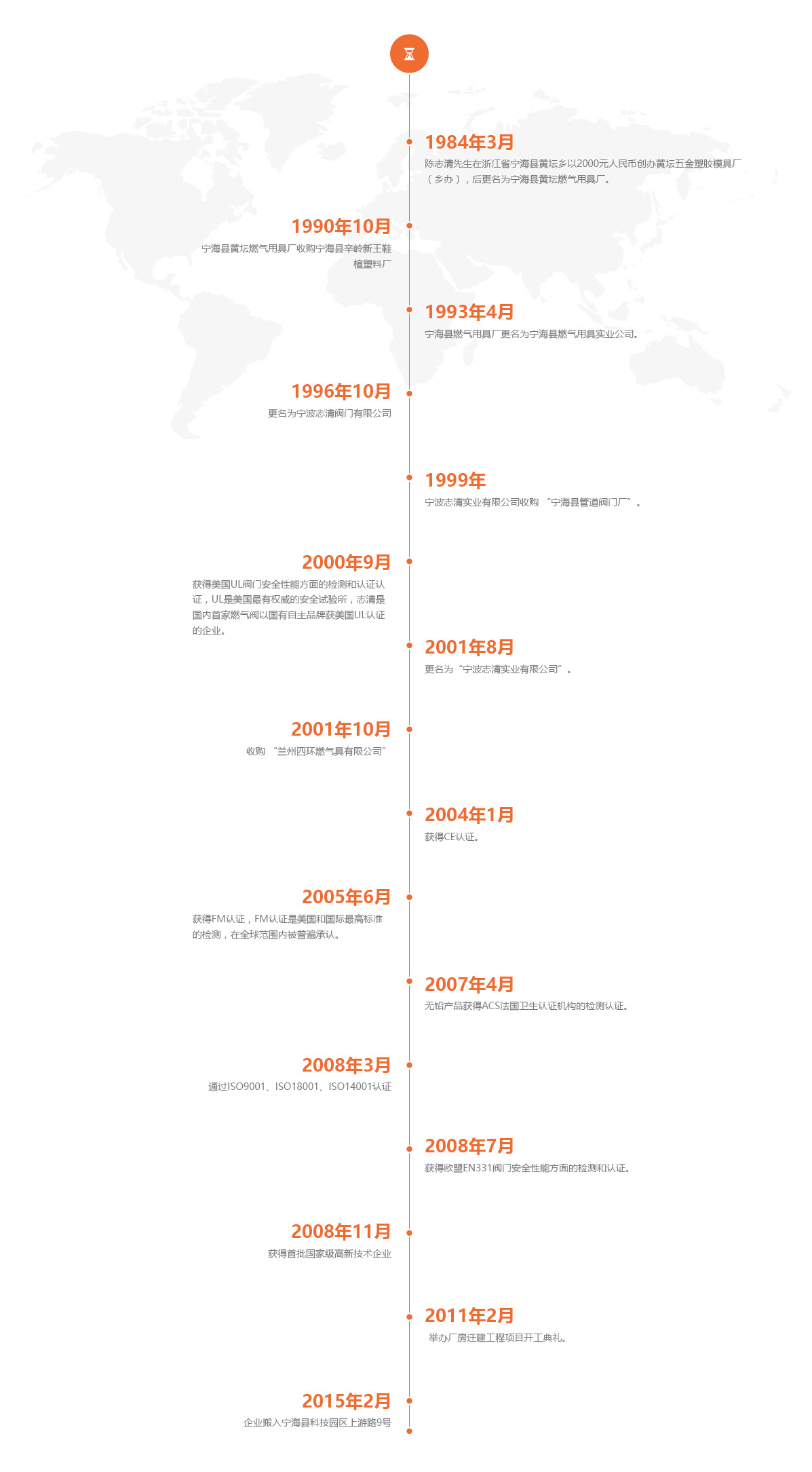 寧波志清實業(yè)有限公司創(chuàng)建于1984年,位于風(fēng)景秀麗、人杰地靈的浙江寧海;是一家集研發(fā)、制造、銷售為一體的高新技術(shù)企業(yè)。公司占地57700平方米,建筑面積62000平方米;擁有現(xiàn)代化的辦公環(huán)境、先進的生產(chǎn)設(shè)備以及一批高素質(zhì)科研技術(shù)人員、高級管理人才。公司本著“品質(zhì)保證,質(zhì)量為本”的品質(zhì)理念,率先通過ISO9001質(zhì)量管理體系、ISO14001環(huán)境管理體系、OHSAS18001職業(yè)健康安全管理體系、壓力管道元件安全體系等認證。