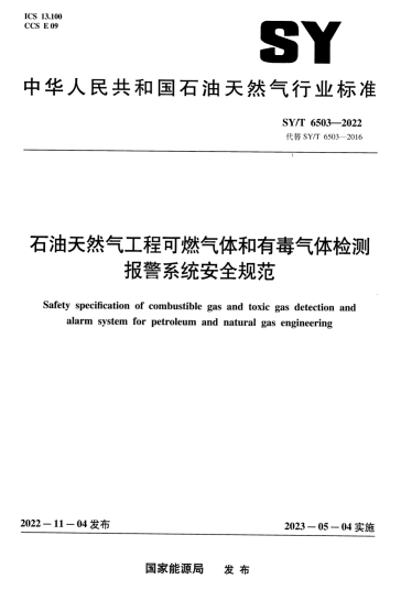 石油天然氣工程可燃氣體和有毒氣體檢測報警系統(tǒng)安全規(guī)范SY/T 6503-2022