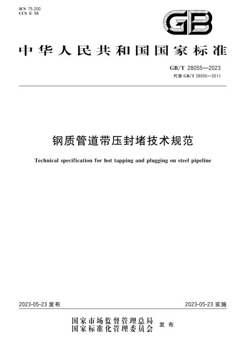 國標(biāo)/T 28055-2023 鋼質(zhì)管道帶壓封堵技術(shù)規(guī)范