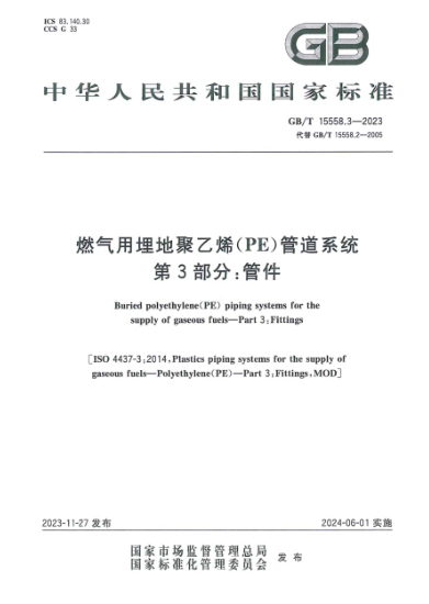 燃?xì)庥寐竦?a href=http://m.babaibao.com/e/tags/?tagname=%E8%81%9A%E4%B9%99%E7%83%AF target=_blank class=infotextkey>聚乙烯(PE)管道系統(tǒng) 第3部分:管件GB/T 15558.3-2023